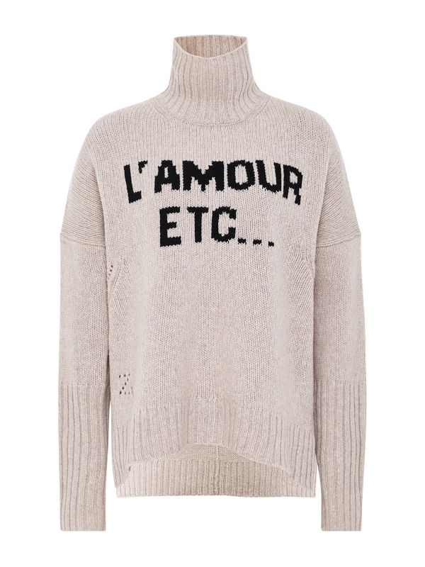 Lend impact to your knitwear with the Zadig & Voltaire Alma L'Amour sweater. Crafted in pure merino wool, the sweater promises a wonderfully soft and cosy handle. Featuring a turtle neck, thumbhole cuffs and wide rib trims, whilst the dropped shoulders and split sides provide a relaxed silhouette. The Zadig & Volatire sweater is complete with a maxi 'L'Amour etc' slogan to the front offering modern appeal.