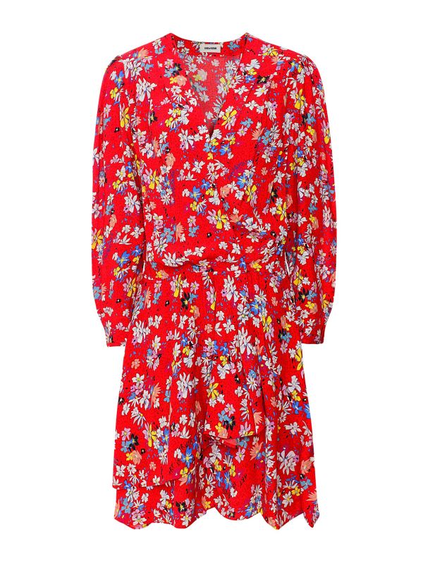 Keep colour flourishing in your autumn/winter wardrobe with the Zadig & Voltaire Rogers dress. This mini-length dress has a wrap-over design with an elasticated waistband that hugs the waist. It has a V-neck, long sleeves, a layered skirt and an all-over floral print with Zadig & Voltaire branding scattered throughout.