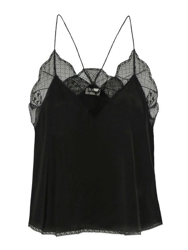 Looking for the perfect black cami? Discover the Silk Christy Camisole by Zadig & Voltaire, a sleek and luxurious style for year-round wear. Made from 100% silk, this slinky camisole top features delicate spaghetti straps and contrasting lace embellished with motifs like stars and thunder. A staple piece, this top can be worn as eveningwear with trousers or dressed down with jeans and a blazer for an everyday outfit.