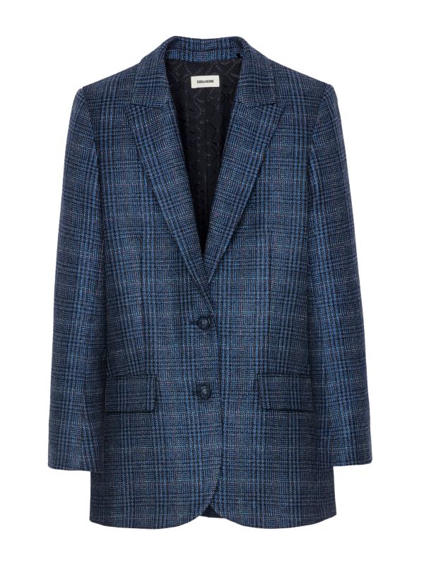The Zadig and Voltaire Viva Car blazer is a statement jacket with an all-over sparkly check. Made from a wool blend, this double-breasted blazer has a tailored collar, two-button fastening at the front, two flap pockets and long sleeves with mitred cuffs. To the back is a centre split, offering a formal touch.